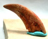 Name: Deltadromeus agilis Age: Middle Cretaceous, Albian Stage Size: (25.4mm=1 inch): 40 mm diagonal length, 13 mm base width. Location: South of Taouz in the Kem-Kem Basin of Morocco Code: DC001 Price: $375.00 - Sold |