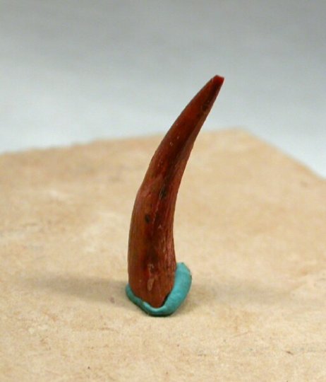 Name: Sciroccopteryx moroccensis, Pterosauria, Anhangueridae Age: Middle Cretaceous, Albian Stage Size: (25.4mm=1 inch): 22 mm diagonal length, 5 mm base width. Location: Kem-Kem Basin, South of Taouz, Morocco Code: PTT004 Price: $40.00 - Sold |