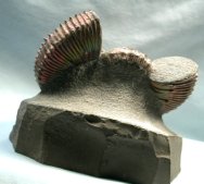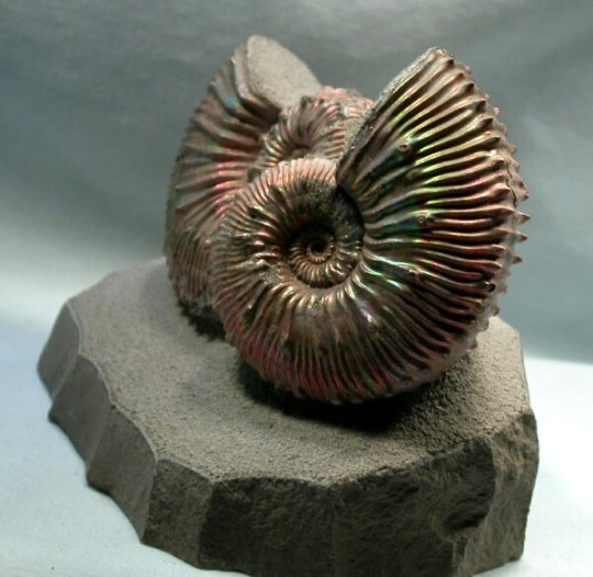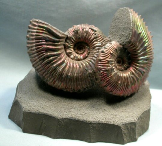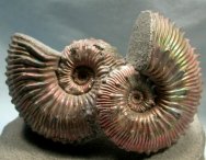Name: Kosmoceras sp. Age: Jurassic, Callovian Stage Size: mm (25.4mm=1 inch): 65 and 75 mm diameter matrix: 105 mm by 75 mm Location: Ulyanovsk, Russia Code: RA195 Price: $175.00 - sold |