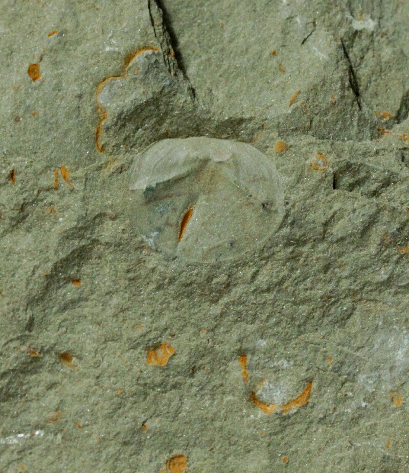 Nautiloidea indetClass Cephalopoda, Subclass Nautiloidea Geological Time: Ordovician Size (25.4 mm = 1 inch): Orthocone fossil is 20 mm long by 15 mm wide on a 90 by 50 mm matrix Operculum: 15 mm by 12 mm on an 80 mm by 60 mm matrix Fossil Site: Jebel Ougnat, Morocco Fossil Code: 13110 Price: Sold |