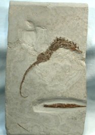 Name: Hippocampus ramulosus (Fossil Seahorse) Age: Lower Pliocene Size: mm (25.4mm=1 inch) 149 mm in length on 195 mm by 115 mm matrix. Location: Marecchia River Formation, Poggio Berni, Rimimini Province, Italy Code: FF005 Price: $795.00 - Sold |