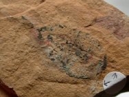 Lamellipedia (Trilobitomorpha); Emeraldellidae; cf Emeraldella (?)Geological Time: Upper Middle Cambrian Size: mm (25.4mm=1 inch): 34 mm long by 15 mm wide with 8 mm segmented antennae on a 70mm by 60 mm matrix Fossil Site: Weeks Formation, Millard County, Utah Code: UB138 Price: $650.00 |