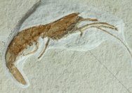 Atrimpos (Penaeus) meyeriGeological Time: Late Jurassic, Kimmeridgian Stage Size (25.4 mm = 1 inch): Shrimp fossil is 87 mm (tip of claws to tip of telson); Matrix: 75 mm by 110 mm Fossil Site: Solnhofen Lagerstatte, Germany Code: GF75 Price: Sold |
