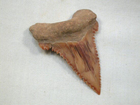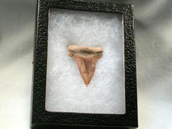 Name: Lamniformes; Lamnidae; Paleocarcharodon orientalis Age: Paleocene to Eocene (60 to 45 million years ago) Size (25.4mm=1 inch): 41 mm diagonal measurement; 31 mm across at base (including root) Location: Khouribga Plateau Morocco Code: PCT06 Price: $50.00 - sold
