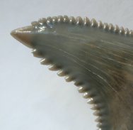 Hemipristus serra shark toothClass Chondrichthyes, Order Carcharhiniformes, Family Hemigaleidae Geological Time: Oligocene Size (25.4 mm = 1 inch): 35 mm long (diagonal), 31 mm wide at base of root Fossil Site: Summerville, South Carolina Code: SKT10 Price: $35.00 - sold