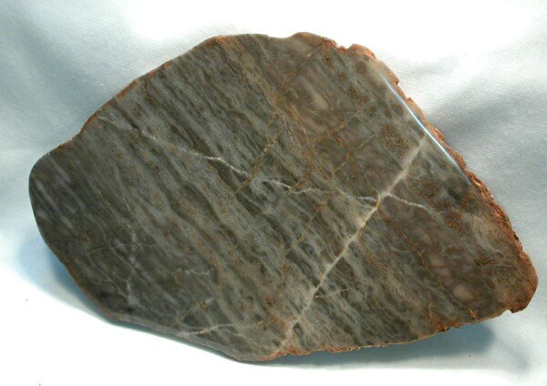 Hadrophycus immanus(Hand polished on one side) Geological Time: Archaean (2.58 Billion Years Old) Size (25.4mm=1 inch): 208 mm by 140 mm (maximum) Fossil Site: Libby Super Group, Nash Fork Shear Zone, Libby Flats, Medicine Bow Range, Wyoming Code: G944 Price: $75.00 - sold