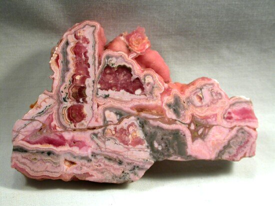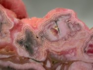 Stromatolites Biogenically- Sourced Manganese Carbonate Age: Pliocene/Pleistocene Size (25.4mm=1 inch): 63 mm by 95 mm (maximum), up to 20 mm thick Location: Capillitas Beds, Andalgala County, Catamarca Province, Argentina Code: ST025 Price: $75.00 - sold |