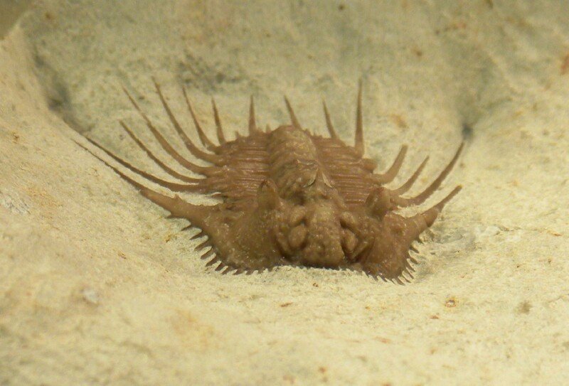 Kettneraspis williamsiTrilobite Order Lichida, Family Odontopleuridae Geological Time: Lower Devonian Size (25.4 mm = 1 inch): Trilobite is 24 mm long by 32 mm wide on a 60 mm by 75 mm matrix Fossil Site: Haragan Formation, Coal County, Clarita, Oklahoma Code: BCM89 Price: Sold |