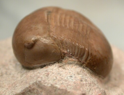 the genal spines. Its dark caramel-colored Calcite shell is well