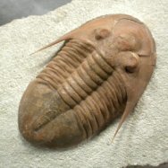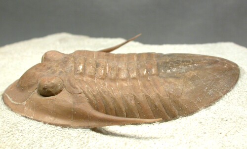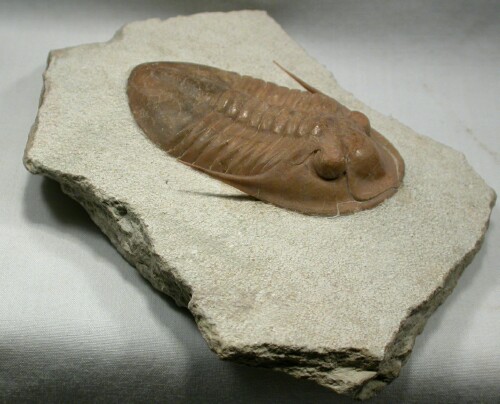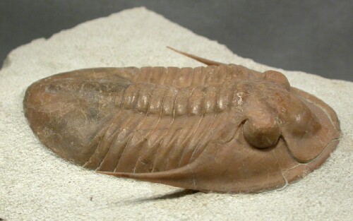 Leningradites longispinusTrilobites Order Asaphida, Subfamily Pseudoaspahinae Geological Time: Middle Ordovician Size (25.4 mm = 1 inch): 75 mm long by 53 mm wide on a 90 by 140 mm matrix Fossil Site: Asery Horizon deposits of the Wolchow River region near Saint Petersburg, Russia Code: RT019 Price: $1250.00