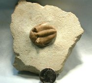 Name: Chasmops praecurrens (Russian Trilobites) Geologic Time: Middle Ordovician Size: inches (25.4mm=1 inch): See description Location: Asery Level deposits of the Wolchow River region near Saint Petersburg, Russia Code: RUT439 Price: $625.00 - sold |
