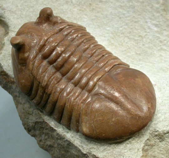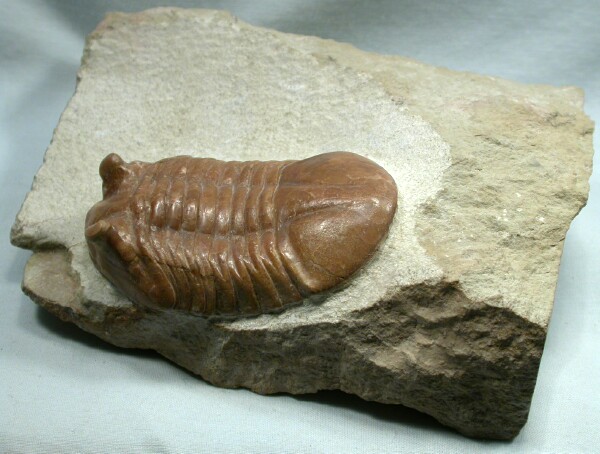 | Name: Asaphus cornutus (Russian Trilobite) Age: Middle Ordovician Size: inches (25.4mm=1 inch): 60 mm long by 37 mm wide on a 110 by 80 mm matrix. Location: Asery Level deposits of the Wolchow River region near Saint Petersburg, Russia Code: RUT616 Price: $95.00 - Sold |