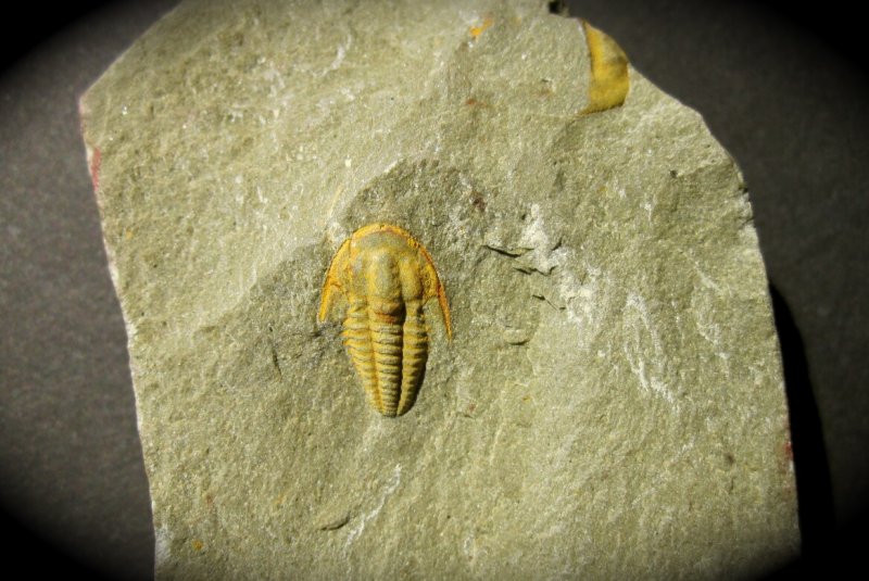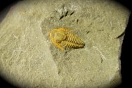 Kymataspis areosaTrilobite Order Ptychopariida, Family Ellipsocephalidae Geological Time: Lower Middle Cambrian Size: Trilobite is 1.2 cm on a 6 x 10 cm plate Fossil Site: Kymataspis areosa Zone, Jbel Wawrmast Formation (Tissafinian Stage) Morocco Code: PFT470 Price: Sold |
