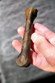 Dromaeosaur Dinosaur BoneClass Reptilia, Superorder Dinosauria, Order Saurischia, Suborder Theropoda, Infraorder Deinonychosauria, Family Dromaeosauridae Geological Time: Late Cretaceous Size: Dinosaur bone is 37 mm in length (1 ½”) Fossil Site: Hell Creek Formation, Harding County, South Dakota Fossil Code: PFV511 Price: $550.00 - sold |