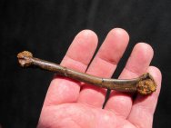 Dromaeosaur Dinosaur BoneClass Reptilia, Superorder Dinosauria, Order Saurischia, Suborder Theropoda, Infraorder Deinonychosauria, Family Dromaeosauridae Geological Time: Late Cretaceous Size: Dinosaur bone is 10.7 cm (4 ¼”) in length Fossil Site: Hell Creek Formation, Harding County, South Dakota Fossil Code: PFV504 Price: Sold |