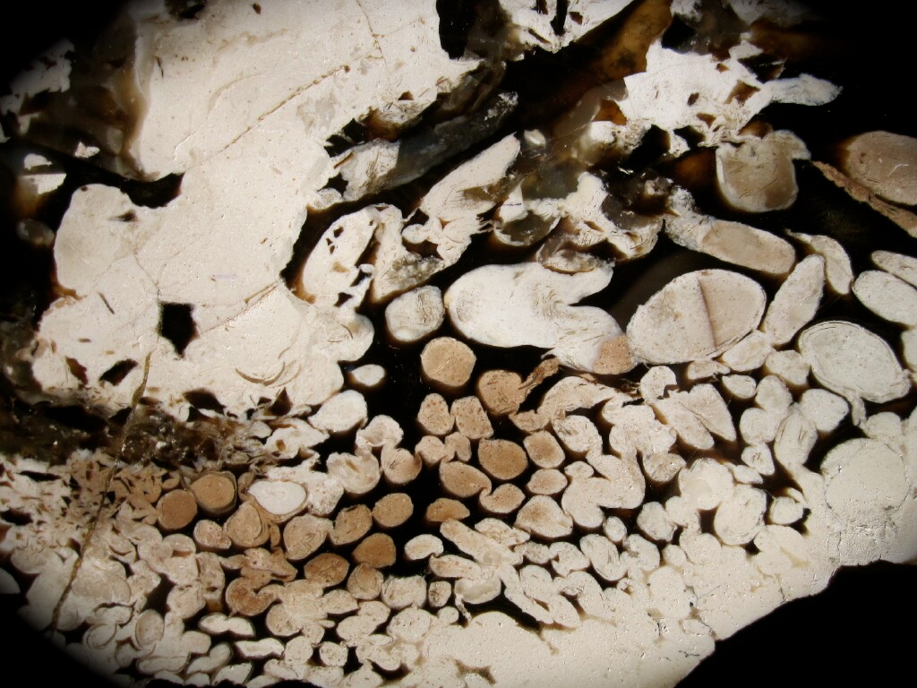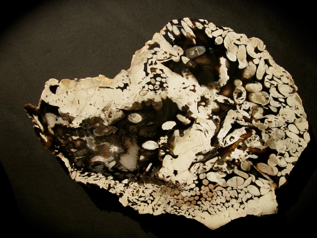 Petrified Wood (Peanut Wood)Division Pinophyta Geological Time: Cretaceous Size: The round is 9” x 6 5/8”.. Fossil Site: Windalia Radiolarite, Kennedy Range, Western Australia Fossil Code: PPW31 Price: $130.00 |