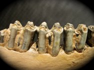 Megaloceros giganteusClass Mammalia, Order Artiodactyla, Family Cervidae Geological Time: Pleistocene Size: Fossil jaw is 16” in length x 9 ½” high Fossil Site: River Rhine, Worms, Germany Fossil Code: PFV382 Price: $350.00 |