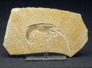 Acanthochirana cordataPhylum Arthropoda, Subphylum Crustacea, Class Malacostraca, Order Decapoda Geological Time: Upper Jurassic Size (25.4 mm = 1 inch): Fossil is 10 cm (4”) from side to side including the antennae. Plate size is 10 cm x 17.5 cm (4” x 7”). Fossil Site: Solnhofen Limestone, Eichstatt, Germany Fossil Code: PFD205 Price: $150.00 |