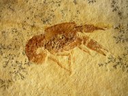 Palaeastacus fuciformis(Lobster) Geologic Time: Jurassic Size (25.4 mm = 1 inch): This specimen is 5.8 cm (2”). The plate size is 20.3 x 15,2 x 3.8 cm (8 x 6 x 1 1/2”). The shipping weight would be approximately seven pounds. Fossil Site: Solnhofen Lagerstätte, "plattenkalk Malm Zeta 2, Eichstatt, Germany Code: PFS015 Price: $280.00 - sold |