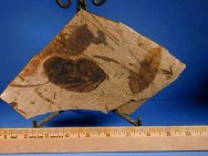 Name: Fossil Plants - see description below Age: Eocene Size (25.4mm=1 inch): 10 by 5.5 inches; Large birch leaf is 3.5 inches Location: McAbee Quarry; Cache Creek, Tranquille Shale, Kamloops Group, British Columbia, Canada Code: CP25 Price: $35.00 - sold |