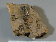 Trigonocarpus, which is the "seed" or "megaspore" of the seed fern Neuropteris Geological Time: Lower Pennsylvanian Size: mm (25.4mm=1 inch): matrix: 65 by 60 mm; Seed or fruit 23 mm length Fossil Site: