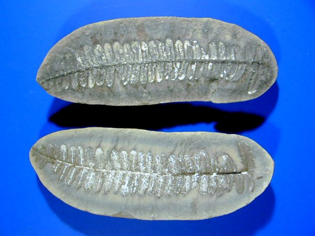 Name: Pecopteris lamuriana Age: Pennsylvanian Size: mm (25.4mm=1 inch): Concretion length: 112 mm (4 3/8 inches) Location: Mazon Creek, Illinois Code: OF-fern2 Price: $45.00 - Sold