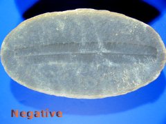 Name: Pecopterus unitus Age: Pennsylvanian Size: mm (25.4mm=1 inch): Concretion length: 121 mm (4 3/4 inches) Location: Moris, Illinois, Mazon Creek Code: OF-fern4 Price: $50.00 - Sold