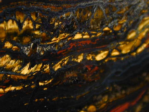 Name: Banded Iron Stromatolite Age: Paleoproterozoic to Archaean (2.4 to 2.6 Billion Years Old) Size: (25.4mm=1 inch): 3.2 by 3.2 inches Location: Hammersly Ranges, Western Australia Code: DS704 Price: $32.00 - Sold |