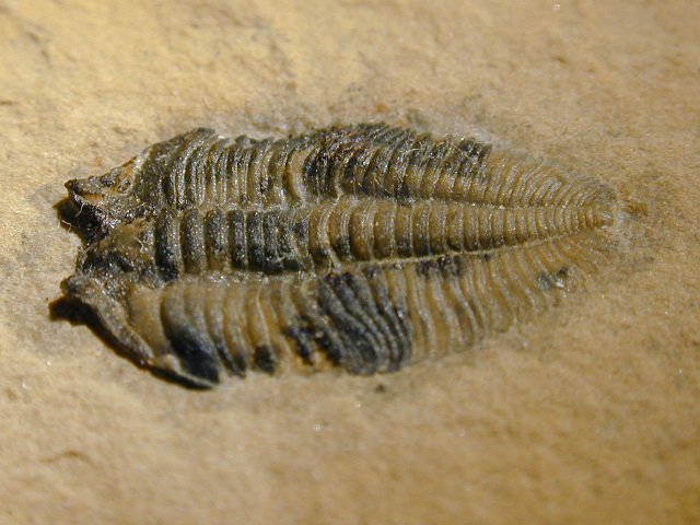 Nephalicephalus beebei TrilobiteTrilobite Order Ptychopariida, Family Menomoniidae Geological Time: Middle Cambrian Size: 13 mm on 58 by 45 mm matrix Fossil Site: House Range, Weeks Formation, Millard County, Utah Fossil Code: SRT106 Price: $145.00 - sold Professionally air abrasion cleaned. Exhibits mottled color characteristic of the Weeks Formation. Very large specimen for the species. |