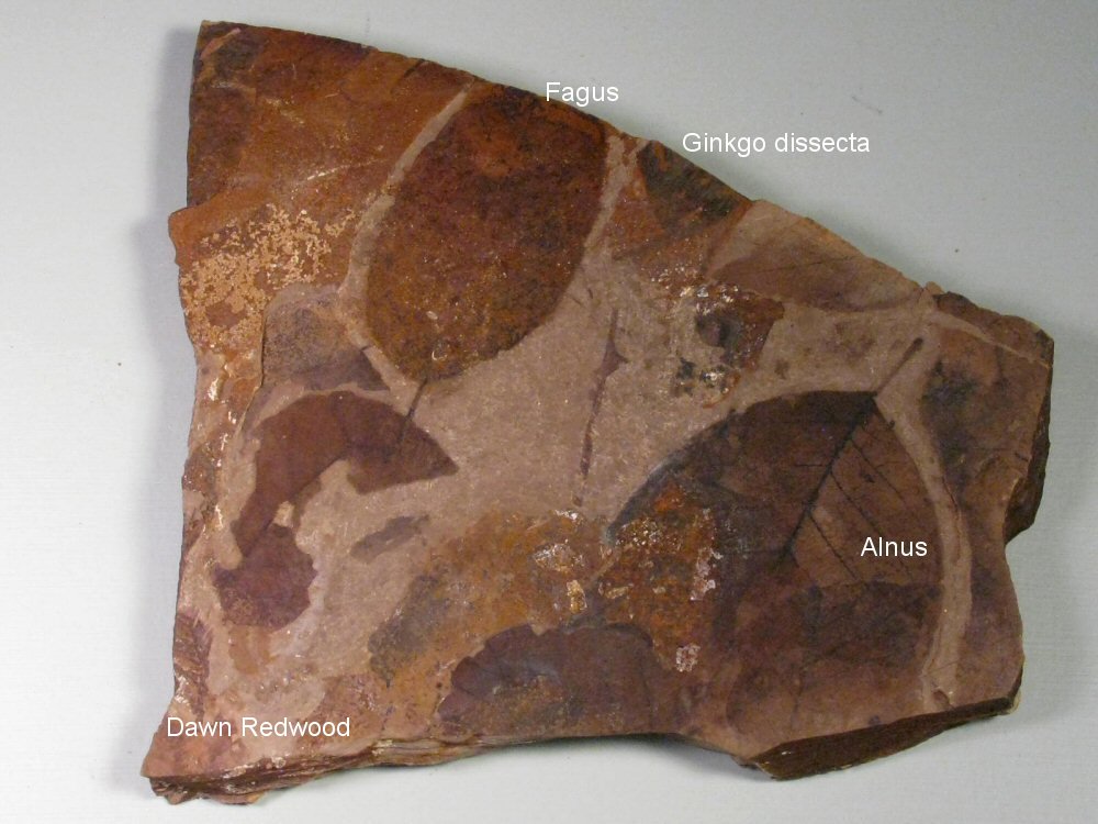 McAbee plant fossils represented on the plate: Alnus parvifolia (Birch) Also see: McAbee Fossil Beds in science section Geological Time: Eocene Size: Matrix longest diagonal is 10 inches Fossil Site: McAbee Fossil Beds, Tranquille Shale, Cache Creek, British Columbia, Canada Code: ZPL142 Price: Sold |