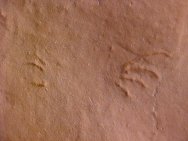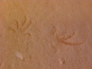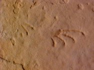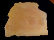Lizard tracks with Brontotheriid tracks (Ichnofossils)Geological Time : Middle Eocene Size (25.4 mm = 1 inch): 540mm X 620mm Brontothere track 100 X 145mm Largest lizard 12mm X 19mm Fossil Site: Green River Formation, Sevier County, Utah Fossil Code: ICH005 Price: $350.00 - Not available
