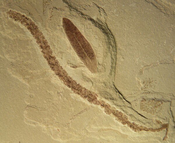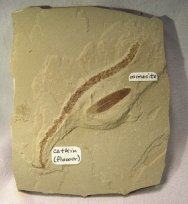 Mimosites coloradensisand Catkin (Flower Cluster) Geological Time: Middle Eocene Size (25.4 mm = 1 inch): Matrix 55mm X 70mm Flower 9mm Fossil Site: Green River Formation, Uintah County, utah Fossil Code: PL58B Price: $45.00 - sold