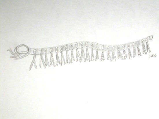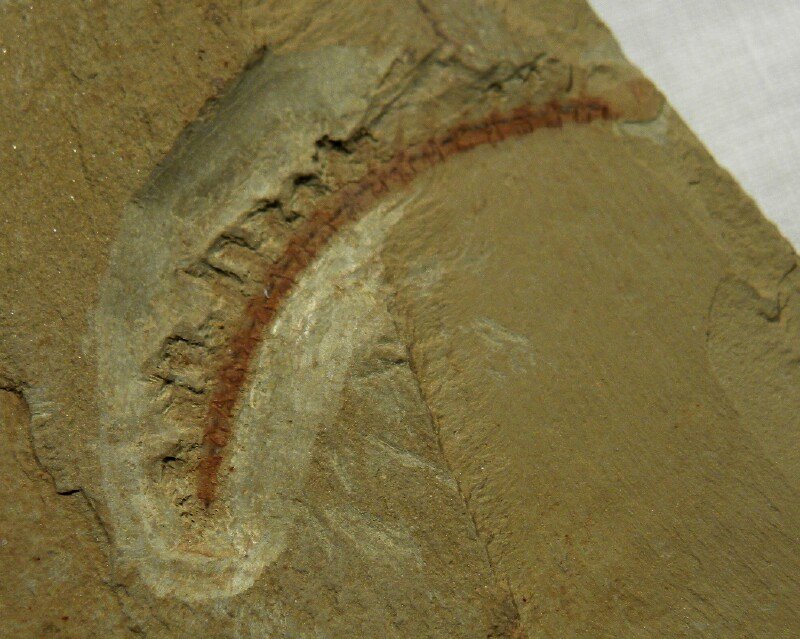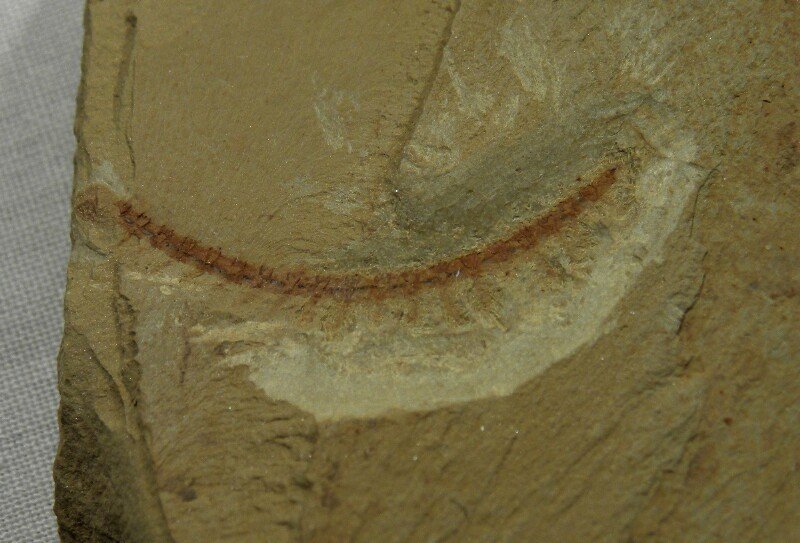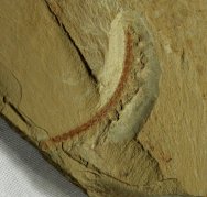 Cardiodictyon catenulumPhylum Lobopodia Geological Time: Early Cambrian, (~525 million years ago) Size (25.4 mm = 1 inch): Cardiodictyon fossil is 27 mm long on a 47 mm by 47 mm matrix Fossil Site: Chengjiang Maotianshan Shales - Quiongzhusi Section, Yu’anshan Member, Heilinpu Formation, Mafang Village, Anning, Kunming, Yunnan Province, China Code: CJF1306 Price: Sold |