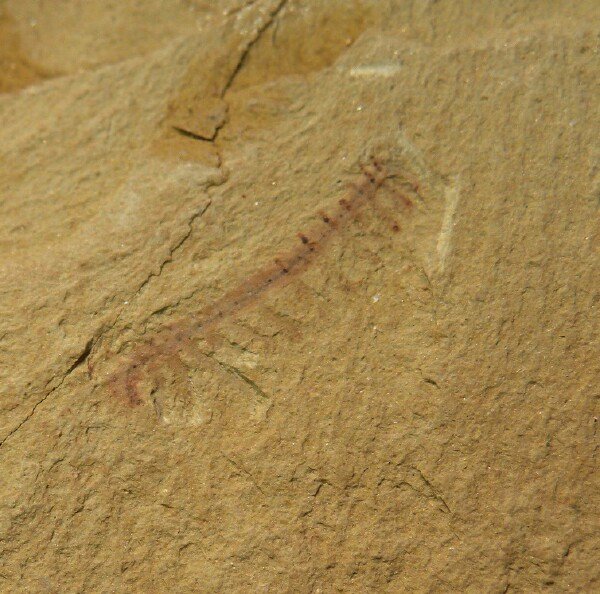 Miraluolishania haikouensisPhylum Lobopodia Geological Time: Early Cambrian (~525 million years ago) Size (25.4 mm = 1 inch): Fossil is 13 mm long (if straight) on a 70 mm by 65 mm matrix Fossil Site: Chengjiang Maotianshan Shales - Quiongzhusi Section, Yu’anshan Member, Heilinpu Formation, Mafang Village, Haikou Town, Anning, Kunming, Yunnan Province, China Fossil Code: CJF872 Price: $1195.00 - sold |