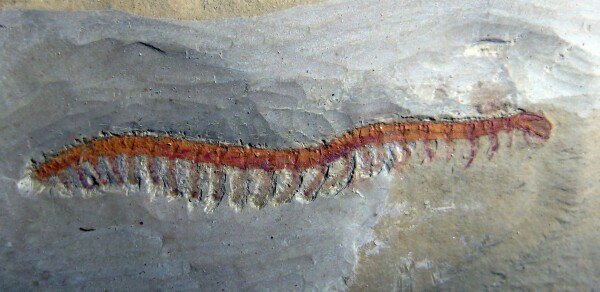 Cardiodictyon catenulumPhylum Lobopodia Geological Time: Early Cambrian (~525 million years ago) Size (25.4 mm = 1 inch): Cardiodictyon fossil is 27 mm long on a 75 mm by 60 mm matrix Fossil Site: Chengjiang Maotianshan Shales - Quiongzhusi Section, Yu’anshan Member, Heilinpu Formation, Mafang, Anning, Kunming, Yunnan Province, China Fossil Code: CJF1324 Price: $750.00 - sold |