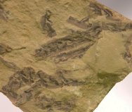Haikouella lanceolataGeological Time: Early Cambrian (~525 million years ago) Size (25.4 mm = 1 inch): Haikouella fossils are 10-20 mm long on a 45 mm by 30 mm matrix Fossil Site: Chengjiang Maotianshan Shales, Quiongzhusi Section, Yu’anshan Member, Heilinpu Formation, Mafang Village, Anning, Kunming, Yunnan Province, China Code: CJF115 Price: Sold |