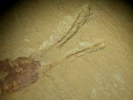 Cf Chengjiangocaris longiformisPhylum Arthropoda Geological Time: Early Cambrian (~525 million years ago) Size (25.4 mm = 1 inch): Fossil is 15 mm long overall including 5 mm antennae on a 55 mm by 35 mm matrix. Fossil Site: Chengjiang Maotianshan Shales - Quiongzhusi Section, Yu’anshan Member, Heilinpu Formation, Mafang Village, Anning, Kunming, Yunnan Province, China Fossils Code: CJF1269 Price: $395.00 - sold |