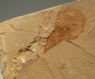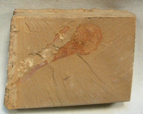 Lingulella chengjiangensisPhylum Brachiopoda Geological Time: Early Cambrian (~525 million years ago) Size (25.4mm=1 inch): 32 mm long (shell 9 mm across) on a 28 mm by 40 mm matrix Fossil Site: Chengjiang Maotianshan Shales - Quiongzhusi Section, Yu’anshan Member, Heilinpu Formation, Mafang, Anning, Kunming, Yunnan Province, China Fossil Code: CJF406 Price: Sold |