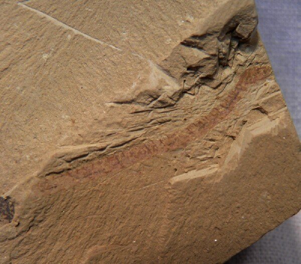 Cardiodictyon catenulumPhylum Lobopodia Geological Time: Early Cambrian (~525 million years ago) Size (25.4mm=1 inch): Cardiodictyon fossil is 22 mm long on a 38 mm by 30 mm matrix Fossil Site: Chengjiang Maotianshan Shales - Quiongzhusi Section, Yu’anshan Member, Heilinpu Formation, Mafang Village, Anning, Kunming, Yunnan Province, China Code: CJF1148 Price: Sold |