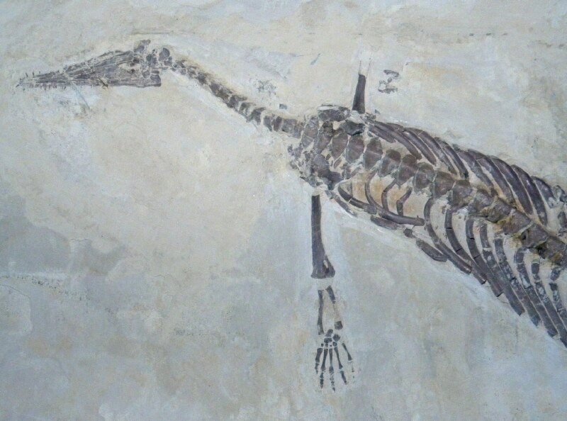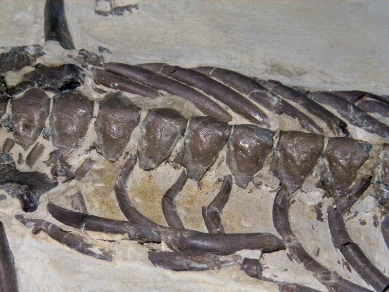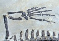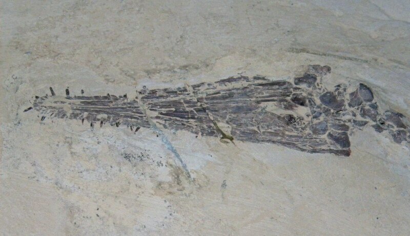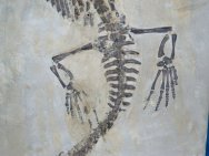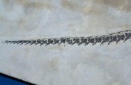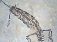 Mesosaurus braziliensisClass Sauropsida, Subclass Anapsida, Order Mesosauria, Family Mesosauridae Geological Time: Lower Permian Size: (25.4 mm = 1 inch): Mesosaurus fossil is 600 mm long overall from tip of snout to tip of tail along backbone, Skull: 53 mm long by 15 mm wide, Forelimb: 66 mm total length, Hind Limb 103 mm long (if straight), Matrix: 370 mm by 330 mm Fossil Site: Irati Formation, Sao Paulo Region, Brazil Fossil Code: SRC01 Price: $2500.00 - sold |