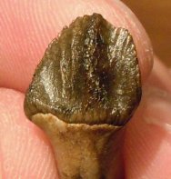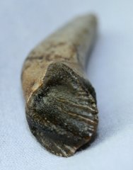 Leptoceratops spClass Sauropsida, Superorder Dinosauria, Order Ornithischia, Suborder Cerapoda, Family Leptoceratopsidae Geological Time: Maastrichtian, Upper Cretaceous (~67 million years ago) Size (25.4 mm = 1 inch): Dinosaur tooth is 10 mm by 10 mm with 26 mm root Fossil Site: Hell Creek Formation, Harding County, Montana Code: HCF25 Price: $250.00 - sold |