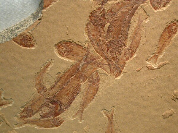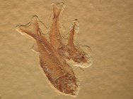 | Gosiutichthys parvus Order Clupeifomes, Family Clupeidae Size (25.4 mm = 1 inch): 25-50 mm in length on a 160 mm by 190 mm matrix Fossil Site: Green River Formation, Fossil Lake, Kemmerer, Wyoming Code: AAF517 Price: $250.00 - sold |
