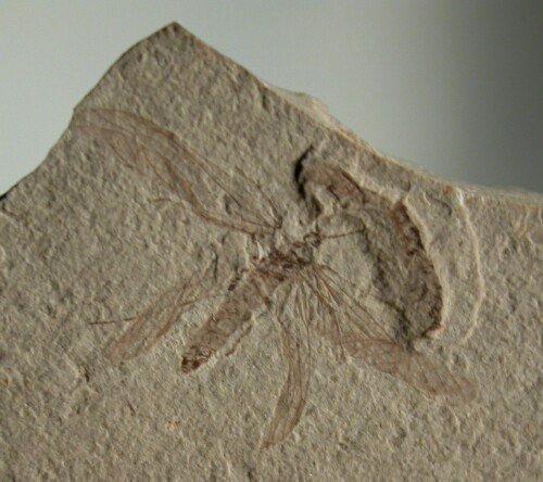 mm = 1 inch): Insect fossil is 7 mm long with 17 mm wingspan