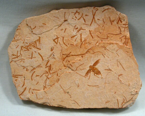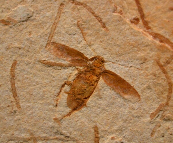 Name: Fossil Insect Order: Ballteria (Cockroach) Geologic Time: Lower Cretaceous Size: mm (25.4mm=1 inch): Cockroach: 10 mm body with 15 mm wingspan . Matrix: 80 mm by 63 mm. Fossil Site: Santana Formation, Ceara, Brazil Code: I012 Price: Sold |