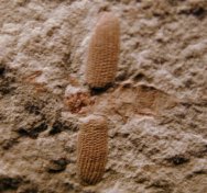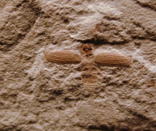 Name: Fossil Insect Order: Coleoptera (beetle) Age: Eocene Size: mm (25.4mm=1 inch): Beetle: 6 mm body with 11 mm wingspan . Matrix: 75 mm by 72 mm. Location: Green River Shale, Uintah County, Utah Code: I005 Price: Sold |