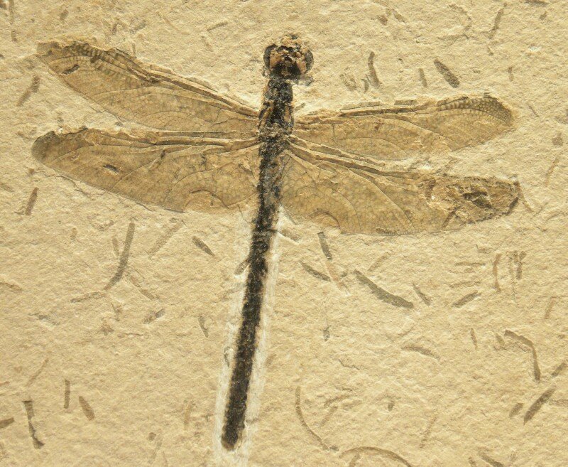 Araripegomphus andreneliInsect Order Odonata, Family Araripegomphidae Geological Time: Lower Cretaceous, Late Aptian-Cenomanian (108-92 million years ago) Size (25.4 mm = 1 inch): Dragonfly fossil has 64 mm wingspan, Head-Body length 56 mm, Matrix: 115 mm by 140 mm Fossil Site: Crato Formation, Nova Olinda Member, Ceara, Brazil Fossil Code: GF79 Price: Sold |