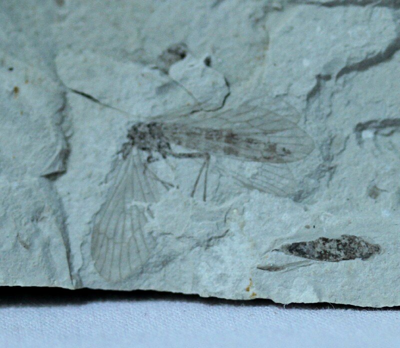 Plecoptera Fossil (Stonefly)Insect Order Plecoptera, Family Baleyopterygidae Geological Time: Middle/Late Jurassic Size (25.4 mm = 1 inch): Insect fossil has 20 mm wingspan, Matrix: 145 mm by 45 mm Fossil Site: Juilongshan Formation, Daohu Valley, Ningcheng County, Neimenggu (Inner Mongolia), China Fossil Code: TF286 Price: Sold |