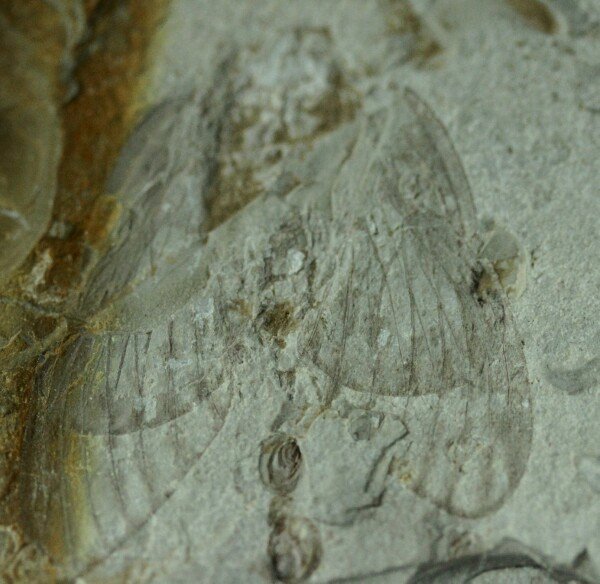 Liaocossus sp (cicada)Insect Order Homoptera Geological Time: Late Jurassic/ Early Cretaceous Size (25.4 mm = 1 inch): Insect fossil is 40 mm including wings; Matrix: 85 mm by 55 mm Fossil Site: Yixian Formation, Huangbangi Valley, Beipiao, Liaoning Province of China Code: CF282 Price: Sold |