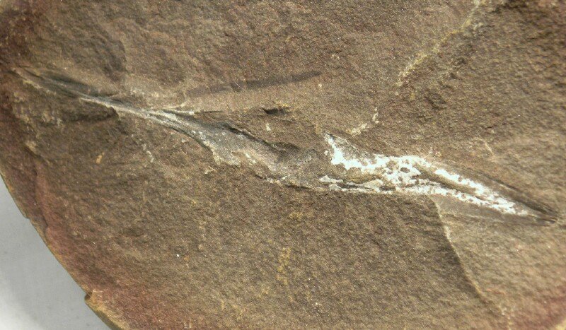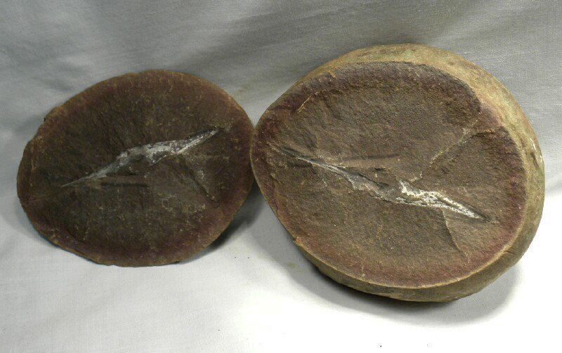 Palaeoxyris spProblematica Geological Time: Pennsylvanian (~300 million years ago) Size (25.4 mm = 1 inch): Fossil is 75 mm long by 12 mm across (maximum); Matrix: 40 mm by 53 mm nodule pair. Fossil Site: Mazon Creek, Morris, Illinois Code: MZF28 Price: Sold |
