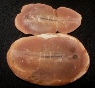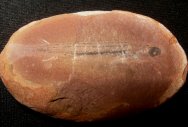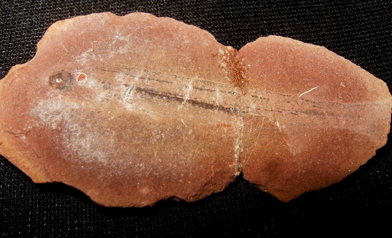 Acanthodes, preserved here in lateral aspect. Note the pigmented